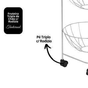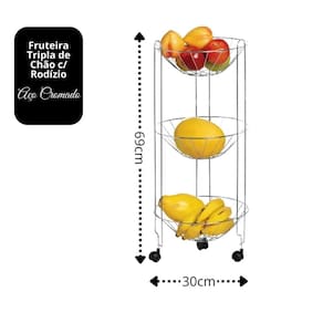 Fruteira Tripla de Chão com Rodízios – Aço Cromado – Cestos Redondos Tradicionais – 69cm x 30cm