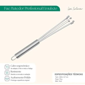 Eleve a experiência gastronômica com o Fue/Batedor Emulsão de ovos e massas da Coleção Isa Scherer. Inspirada na prestigiada chef vencedora do MasterChef 2021 e destaque na categoria gastronomia da lista Forbes Under 30, a linha desenvolvida em colaboração com a Mimo Style oferece qualidade gourmet e uma excelente experiência culinária. O Fue/Batedor Emulsão é produzido em Aço Inox de alta qualidade, resistente à corrosão e prolongando as características após uso intenso e repetido. Ele é ideal para criar misturas homogêneas, garantindo que as emulsões, ovos e massas atinjam a consistência com facilidade e um resultado . O Aço Inox confere um visual limpo e , além de facilitar a limpeza após cada uso.