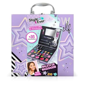 Composta por uma variedade de acessórios de maquiagem, como sombras, batons, pincéis e muito mais, a Maleta de Maquiagem Fun Divirta-se permite que os jovens explorem sua criatividade e montem produções realmente divertidas e originais, desenvolvendo seu senso estético.