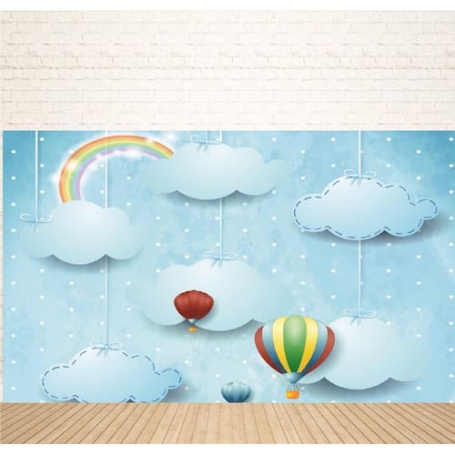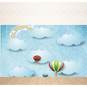 Fundo Fotográfico Em Tecido Balões Nuvens 2,20X1,50