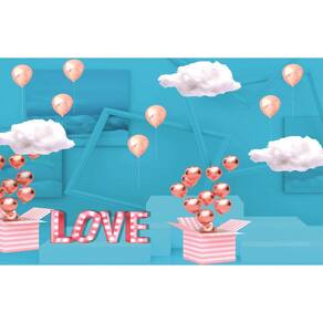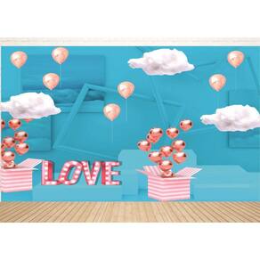 Fundo Fotográfico Em Tecido Balões Rosa Love 2,20X1,50