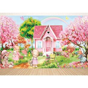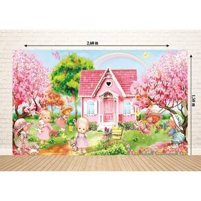 Fundo Fotográfico Em Tecido Casa Rosa Jardim 2,60X1,50