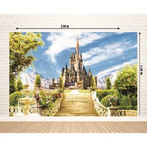 Fundo Fotográfico Em Tecido Castelo Aniversário 2,80X1,50.