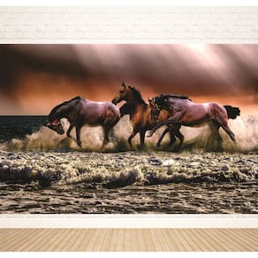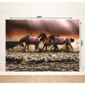 Fundo Fotográfico Em Tecido Cavalos Na Praia 2,60X1,50.