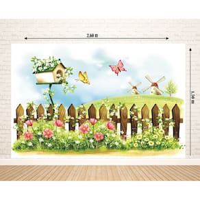 Fundo Fotográfico Em Tecido Jardim Das Borboletas 2,60X1,50.