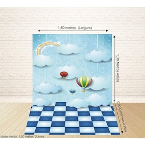 Fundo Fotográfico Em Tecido Newborn Balões Nuvens 1,50X2,20