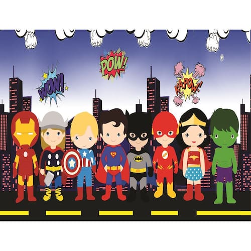Fundo Fotográfico Em Tecido Super Heróis Baby 2,60X1,50