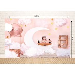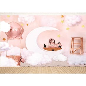 Fundo Fotográfico Em Tecido Ursinho Na Lua 2,20 X 1,50