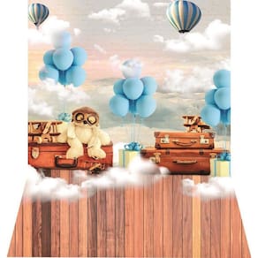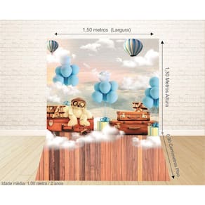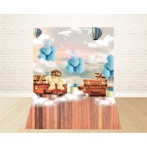 Fundo Fotográfico Newborn Em Tecido Urso Balões 1,50X2,20