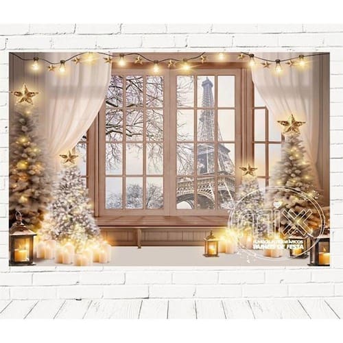 Esse fundo possui um design moderno e muito bonito, ideal para ensaios fotográficos profissionais. Sua estampa de Natal em Paris traz um toque especial para suas fotos, deixando-as ainda mais atrativas e impactantes.