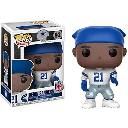 ""Produto internacional. Os impostos estão incluídos. O cliente não precisa pagar impostos; caso o faça, não será reembolsado.""Da NFL, Deion Sanders (casa dos cowboys), como um vinil pop estilizado da Funko! figura tem 3 3/4 polegadas e vem em uma caixa de exibição de janela. Confira as outras figuras da NFL da Funko! colecione todas!