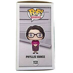 ""Produto internacional. Os impostos estão incluídos. O cliente não precisa pagar impostos; caso o faça, não será reembolsado.""Ou queria ser funcionário da Dunder Mifflin Paper Company? Talvez você sonhe em assistir ao seu primeiro “Dundies” no restaurante Chilli's local? Ou talvez você só queira explodir Everybody Hurts no seu carro. Se você respondeu sim a qualquer uma dessas três coisas, então temos uma maneira infalível de chegar um passo mais perto de alcançar seu objetivo; é o novo The Office Pop da Funko! Figuras de vinil! Aqui temos Phyllis Vance, completa com cardigã roxo e ela prepara as últimas fofocas de escritório.