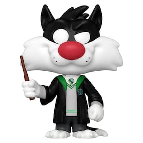 Tenha na sua coleção a edição comemorativa de 100 anos da Warner Bros, do Frajola de Looney Tunes, vestido com o uniforme da casa Sonserina da Escola de Magia e Bruxaria de Hogwarts.