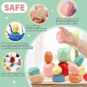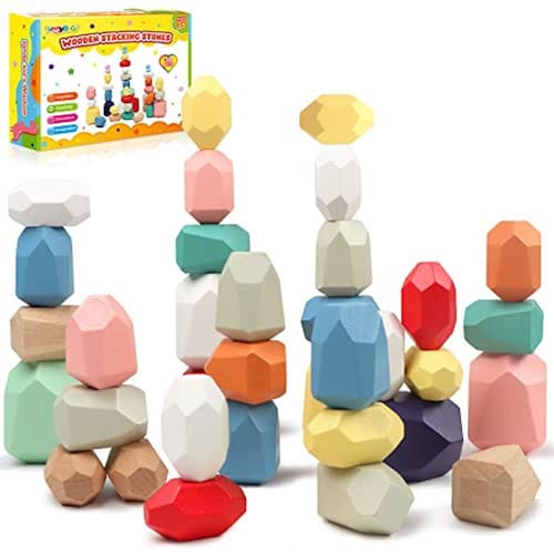 FUNNYB&G Empilhamento de madeira Pedras de Equilíbrio Pedras - 38 PCS Blocos de construção de madeira l Montessori Pré-escola Brinquedos de aprendizagem Toddler Classificação de brinquedos para 2 3 4 5 Crianças Presente de Natal Presente de Natal Presente