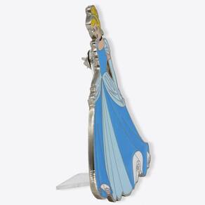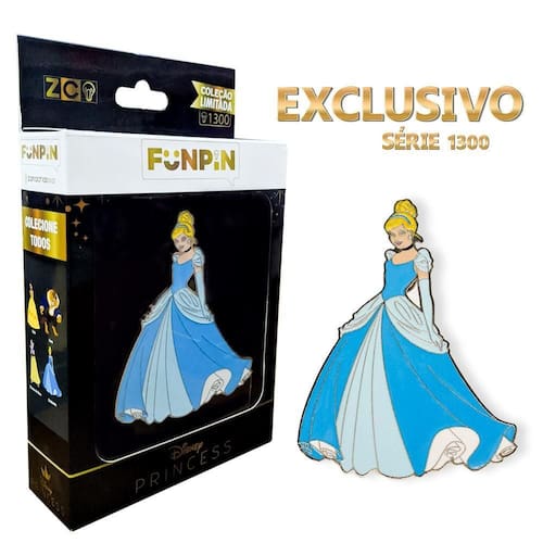 Feito em metal zamak com pintura automotiva de alta qualidade, o Funpin Cinderela é resistente a arranhões e desbotamentos. Ele possui tarraxas para fixação e um suporte de acrílico que o mantém em pé. Além disso, cada FunPin possui um número de série exclusivo para você identificar suas coleções.