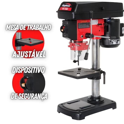 Furadeira De Bancada Kajima FB 1300 Elétrica 1/3HP Bivolt ASSISTÊNCIA TÉCNICA EM TODO TERRITÓRIO NACIONALEQUIPE DE PÓS-VENDA A DISPOSIÇÃOPRODUTO COM 6 MESES DE GARANTIAENVIO MAIS RÁPIDO DO BRASIL PEÇAS DE REPOSIÇÃO DE FÁCIL ACESSO----------- EQUIPE DE PÓS-VENDA A DISPOSIÇÃO -----------A Furadeira de bancada FB 1300 Kajima é um equipamento versátil que possui diversos ajustes que a torna ideal para ser utilizada em ateliês, carpintaria, marcenaria, mecânica, serralheria e oficinas em geral. É uma furadeira Bivolt, com ajuste de tensão 127V / 220V através de chave seletora. Conta com mesa de trabalho em formato X, que torna mais fácil a fixação da morsa ou peças; além de que permite diversas opções de regulagem,inclusive inclinação até 45°, facilitando a furação em diversos ângulos ou posições da peça. Além disso, contém um dispositivo de segurança no botão de ligar e desligar que, quando retirado do interruptor, evita seu funcionamento, evitando, assim, acionamento acidental. Ainda, possui protetor de cavacos, que evita que detritos sejam arremessados no operador durante o uso; além de alavancas no eixo de avanço que proporcionam maior praticidade e precisão na hora de ajustar a profundidade de perfuração. Possui velocidade de rotação com 5 ajustes, de 740 a 3140 rpm; profundidade de perfuração até 50 mm, com indicador e é compatível com brocas de 1,5 a 13 mm. Especificações técnicas: Modelo: FB 1300Marca: KajimaTipo: Furadeira de bancada, elétrica, 4 pólosTensão: Bivolt 127V e 220VAmperagem: 2,0A (127V)/ 1,2A (220V)Potência: 1/3HPMesa de fixação: 160 x 160 mm - Inclinável até 45 grausVelocidades de perfuração: 5 (740 x 3140 rpm)Capacidade de mandril: 1,5 a 13 mmProfundidade máxima de perfuração: 50 mmDimensões: 455 x 200 x 580 mm Peso Líquido: 15kg Dimensões aproximadas da embalagem: 25 x 34 x 46 cm (A x L x P)Peso aproximado da embalagem: 6,52kgGarantia do fornecedor: 6 MesesConteúdo da embalagem: 1 Furadeira de bancada 1 Manual de uso