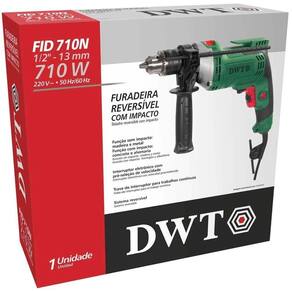 Destaques: Possui interruptor eletrônico com pré-seleção de velocidade, o qual permite controlar a rotação da máquina, possibilitando iniciar o furo com uma rotação baixa e aumentar gradativamente de acordo com a necessidade de perfuração. Conta também com sistema reversível, que facilita a retirada da broca caso ela trave durante a perfuração. Possui botão trava do interruptor para trabalhos contínuos, punho auxiliar e limitador de profundidade, conferindo maior praticidade ao operador. Conta ainda com motor com dupla isolação, que garante maior segurança.