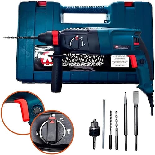 Furadeira de Impacto 220v cabeça de ferro Furadeira Cabeça de Ferro Furadeira de Impacto Mandril de 1/2 Parafusadeira Reversivel 820w + Maleta Kit Completo A Furadeira de Impacto Marca: NAKASAKI é uma ferramenta leve e prática. Com função de impacto e guia de profundidade, auxilia no dia a dia das pessoas que buscam realizar as tarefas de manutenção de casa com comodidade e rapidez. Seu punho lateral com rotação 360 garante mais conforto e precisão nas atividades manuais. A furadeira ainda conta com controle de velocidade reversível e botão trava gatilho para serviços de perfuração de madeiras, metais e concreto. Características: - Alta precisão na broca - Potente motor com 820W - Punho com design ergonômico, mais Conforto para seu dia a dia. - Velocidade Variável - Auto Reverso Especificações: - Marca: NAKASAKI - Modelo: NK6013 - Tensão: 127v e 220v não é bivolt - Potência : 820W - Mandril : 13mm - Impactos por min.: 0 - 48.000 IPM - Rotações por min.: 0 - 3000 RPM - Capacidades: Diâmetro de Perfuração Concreto - 13mm / Aço - 13mm / Madeira - 20mm - Dimensões C x L x A : 31x29x9cm - Peso : 2,55kg - Cabo de Energia : 2m ACOMPANHA: 25PÇS - 1 Punho - 1 Regua de Profundidade - 1 Chave mandril - 8 Soquetes 5mm - 12mm - 2 Pontas Fendas - 2 Pontas Phillips - 1 Ponta Universal - 1 Extensor para Furadeira - 1 Caixinha com Parafusos e Buchas - 8 Brocas variadas de aço carbono - 1 Manual - 1 Maleta Obs: No ato da compra escolha a voltagem se 110v ou 220v. do vendedor: 3 meses Marca: Não Informado