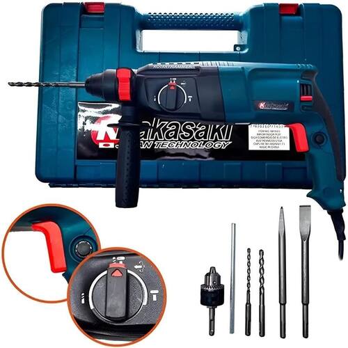 Furadeira de Impacto 220v cabeça de ferro Furadeira Cabeça de Ferro Furadeira de Impacto Mandril de 1/2 Parafusadeira Reversivel 820w + Maleta Kit Completo A Furadeira de Impacto Marca: NAKASAKI é uma ferramenta leve e prática. Com função de impacto e guia de profundidade, auxilia no dia a dia das pessoas que buscam realizar as tarefas de manutenção de casa com comodidade e rapidez. Seu punho lateral com rotação 360 garante mais conforto e precisão nas atividades manuais. A furadeira ainda conta com controle de velocidade reversível e botão trava gatilho para serviços de perfuração de madeiras, metais e concreto. Características: - Alta precisão na broca - Potente motor com 820W - Punho com design ergonômico, mais Conforto para seu dia a dia. - Velocidade Variável - Auto Reverso Especificações: - Marca: NAKASAKI - Modelo: NK6013 - Tensão: 127v e 220v não é bivolt - Potência : 820W - Mandril : 13mm - Impactos por min.: 0 - 48.000 IPM - Rotações por min.: 0 - 3000 RPM - Capacidades: Diâmetro de Perfuração Concreto - 13mm / Aço - 13mm / Madeira - 20mm - Dimensões C x L x A : 31x29x9cm - Peso : 2,55kg - Cabo de Energia : 2m ACOMPANHA: 25PÇS - 1 Punho - 1 Regua de Profundidade - 1 Chave mandril - 8 Soquetes 5mm - 12mm - 2 Pontas Fendas - 2 Pontas Phillips - 1 Ponta Universal - 1 Extensor para Furadeira - 1 Caixinha com Parafusos e Buchas - 8 Brocas variadas de aço carbono - 1 Manual - 1 Maleta Obs: No ato da compra escolha a voltagem se 110v ou 220v. do vendedor: 3 meses Marca: Não Informado