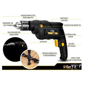 Furadeira de impacto 3/8 pol 550w cor preto 220v Furadeira com impacto 3/8 10mm 550w tbf550 - the black tools A furadeira com impacto tbf550 da the black tools é uma ferramenta elétrica poderosa projetada para tornar perfurações eficientes e precisas em diversas superfícies. Com sua potência de 550w, essa furadeira é capaz de enfrentar uma variedade de materiais, desde madeira até concreto. Extremamente compacta para trabalhar em locais estreitos e acima da cabeça, confiável e acessível da sua classe. Seu design robusto e ergonômico oferece conforto durante o uso prolongado, reduzindo a fadiga do operador. Vantagens: - resultados precisos. - marca de confiança. - potência versátil. - função de impacto. Itens inclusos: - 01 furadeira de impacto. - 01 chave de mandril. - 01 manual de uso. Ficha técnica: - capacidade de perfuração da alvenaria: 10mm. - capacidade de perfuração da madeira: 25mm. - capacidade de perfuração do metal: 10mm. - mandril polegadas : 3/8'' 10mm . - comprimento do cabo: 1,2 metros. - possui botão de trava: sim. - possui função impacto. - velocidade: 2800 rpm. - impacto: 48000 ipm. - potência: 550w. - tensão: 110v. Modelo: tbf550 Peso: 1.800 kg Dimensões axlxp : 25,5 x 23,5 x 5 cm Marca: Não Informado
