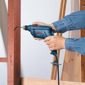 A Furadeira de Impacto Bosch GSB 450 RE, com potência de 450 W, para diversas superfícies. Equipada com um motor potente, a GSB 450 Professional proporciona força e torque adequados para lidar com tarefas de perfuração e parafusamento em diferentes materiais, como madeira, metal e alvenaria. Ela é capaz de perfurar facilmente superfícies duras e executar trabalhos pesados.