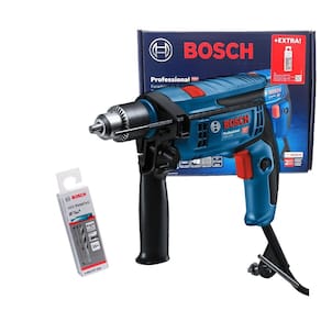 Furadeira de impacto bosch gsb 13 re profissional com 750w - lançamento E jogo com 10 brocas de 7/64 polegadas -rendimento com eficiência e qualidade; -alta performance em todos os materiais; -potente motor de 750 w; -muito leve e compacta, com apenas 1,8 kg: facilita o trabalho em locais estreitos e de difícil acesso. - com velocidade variável, possibilita o controle de velocidade no gatilho para parafusar. Características: -botão-trava para trabalhos contínuos; -empunhadeira emborrachada: agarre seguro e confortável. - de velocidade variável. Dados técnicos: -potência absorvida: 750 w; -nº de rotações sem carga : 0 - 3800 r.P.M.; -peso: 1.8 kg; -corrente nominal: 6,2a; -mandril: 1/2 13mm ; -amplitude de aperto, min./máx.: 1,5 - 13 mm -comprimento: 266 mm; -altura: 180 mm; -nº máx. De impactos em vazio: 0 - 57000 b.P.M. Faixa de perfuração: -diâmetro de perfuração em concreto: 13 mm -diâmetro de perfuração em madeira: 25 mm -diâmetro de perfuração em aço: 10 mm Perfurar metal: -valor de emissão de vibrações ah: 7,5 m/s; -incerteza k: 1.5 m/s. Perfurar com percussão em concreto: -valor de emissão de vibrações ah: 21,7 m/s; -incerteza k: 1,5 m/s. Obs: não usar para furar, acima do indicado, ou quebrar paredes maciças de concreto, Nesse caso, é indicado o martelete. Parafusar: -valor de emissão de vibrações ah: 2.5 m/s; -incerteza k: 1.5 m/s. Itens incluso: -01 empunhadeira adicional; -01 limitador de profundidade; -01 chave do mandril; -kit de 10 brocas: 10 brocas de 7/64. Broca para metal aço rápido hss-pointteq Para parafusadeiras/furadeiras Brocas para metal bosch aço rápido hss-pointteq 7/64 com 10 unidades 68mm de comprimento total e 39mm de comprimento útil