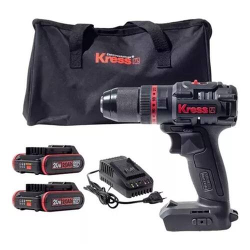 Marca: Kress Modelo: KUC30.1 Tipo de Motor: Brushless Tensão: 20V Bateria: 2.0 Ah Impactos: 0-33600bpm Mandril: 13mm sem chave Ajuste de torque: 22+1+1 Ergonomia: Design leve e confortável Iluminação: LED integrado para melhor visibilidade