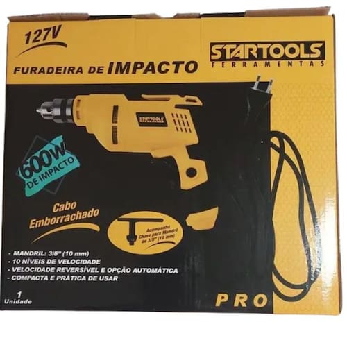Para que serve / Funcionalidades Perfeita para perfurar madeira, metais e concreto leve. Ideal para fixação de objetos, instalações elétricas, montagens, reparos, obras pequenas e uso doméstico ou profissional. A função reversível auxilia no parafusamento e na retirada de brocas com mais facilidade. Descrição Ferramenta potente, compacta e versátil, essa furadeira de impacto oferece alto desempenho com 600W de potência no modo impacto e 300W em rotação. Chega a até 3.000 rotações por minuto, garantindo eficiência nas perfurações em diversos materiais. Conta com mandril de 10mm com chave de aperto para maior segurança, função reversível para aplicações versáteis, e cabo emborrachado que proporciona conforto no uso contínuo. É leve, ergonômica e segura, equipada com sistema de dupla isolação elétrica, sendo ideal para trabalhos em madeira, aço ou alvenaria leve. O que contém