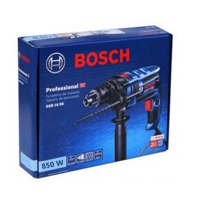 A furadeira de impacto Bosch GSB 16 RE é indicada para os trabalhos mais exigentes. É a primeira furadeira da categoria com 850W de potência e rotação de 3.500 RPM, por isso, traz a combinação perfeita de robustez e desempenho. Versátil, conta com 2 modos de perfuração, com impacto e sem impacto. A carcaça reforçada, a engrenagem helicoidal, o porta-escovas e o botão de reversão de alta qualidade tornam a ferramenta muito mais durável com o benefício de oferecer menor vibração e ruído para o usuário. Além disso, o melhor alinhamento das peças internas contribui também para o aumento da vida útil. A furadeira de impacto também vem com pega emborrachada para melhor aderência e conforto durante o uso. Vem com interruptor de velocidade variável, punho auxiliar e radial para um manuseio seguro, além de botão trava para trabalhos contínuos.- Uso industrial com 2 anos de garantia.Características:- Equipamento Bosch Heavy Duty;- Possui velocidade variável;- Não possui controle de torque;- Equipamento rolamentado;- Acabamento da ferramenta: Poliamida, metal e elastômero;- Acabamento do cabo: Borracha, cobre;- Comprimento do cabo: 2 metros;- Tipo de embalagem: Caixa de Papelão- Material de aplicação indicado: Perfurações em concreto, alvenaria, madeira e metal com e sem impacto;- Público Alvo: Pedreiros, marceneiros, carpiteiros, instaladores em geral, vidraceiros, oficinas de manutenção, serralheiros, eletricistas, calheiros.Especificações Técnicas:- Tensão: 110v ou 220v não é bivolt ;- Cor: Azul;- Mandril: 1/2 - 13 mm com chave ;- Potência nominal absorvida: 850W;- Nº de rotações em vazio: 0 - 3.500 rpm;- Nº máx. De impactos em vazio: 0 - 52.500 ipm;- Torque nominal: 2,1 Nm;- Amplitude de aperto Mínimo/Máximo : 1,5 - 13 mm;- Peso: 2 kg;- Dimensões Produto AxLxP : 19,3 x 7 x 28,1 cm.Faixa de Perfuração:- Diâmetro de perfuração em concreto: 16 mm;- Diâmetro de perfuração em madeira: 30 mm;- Diâmetro de perfuração em aço: 13 mm.Vibração m/s :- Furar com Impacto em concreto: ah = 18,0 m/s, K = 1,5 m/s;- Furar metal: ah = 7,3 m/s, K = 1,5 m/s.Itens Inclusos:- 1 Furadeira de impacto GSB 16 RE;- 1 Empunhadeira auxiliar;- 1 Chave de mandril;- 1 Limitador de profundidade;- 1 Manual de Instruções.