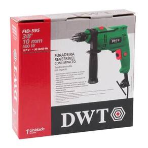 Descrição do produto: Furadeira de impacto velocidade variável e reversível 3/8 pol. 500w - dwt-fid595 Furadeira de impacto fid-595 com 500w de potência, velocidade variável e sistema reversível. Ideal para metal e madeira na função sem impacto e para concreto e alvenaria na função com impacto, com os acessórios adequados. Características: - possui interruptor eletrônico com pré-seleção de velocidade, o qual permite controlar a rotação da máquina, possibilitando iniciar um furo com uma rotação baixa e aumentar gradativamente de acordo com a necessidade de perfuração - sistema reversível, que facilita a retirada da broca caso ela trave durante a perfuração - botão trava do interruptor para trabalhos contínuos, punho auxiliar e limitador de profundidade, conferindo maior praticidade ao operador - maior segurança com motor com dupla isolação - segue normas: abnt nbr iec 60745-1 e abnt nbr iec 60745-2-1 Especificações técnicas: - modelo: 6005595127 - potência: 500w - tensão: 110v - frequência: 50/60hz - capacidade do mandril: 3/8 (10 mm) - tipo de mandril: com chave - tipo de velocidade: variável - rotação: 0 – 2800rpm - impactos por minutos: 0 – 44800ipm - isolação dupla Capacidade máxima de perfuração: - aço: 8mm - madeira: 20mm - concreto: 10mm Acompanha: - 01 chave para mandril - 01 limitador de profundidade - 01 punho auxiliar Medidas aproximadas do produto - Comprimento: 30 cm - Altura: 15 cm - Largura: 30 cm - Peso: 2000 g