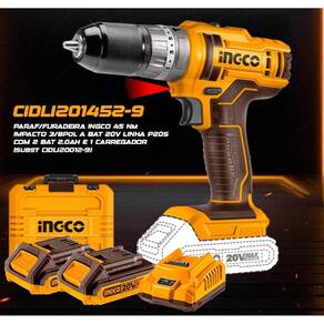 PARAFUSADEIRA E FURADEIRA INGCO COM IMPACTO 3/8” À BATERIA ÍON-LÍTIO 20V