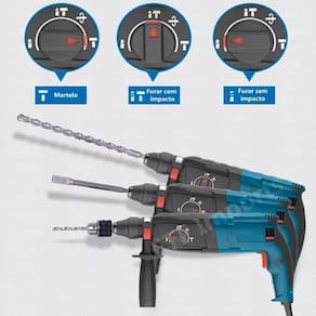 Este instrumento usa diferentes modos de operação, tais como Furar sem percussão, Furar com percussão, Cinzelar. Você poderá alternar entre as funções de acordo com a tarefa a ser realizada.
