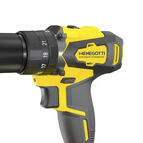 Furadeira parafusad 20v mfi 20 menegotti + bateria e kit Furadeira de impacto e parafusadeira a bateria 20v intercambiável mfi-20v com motor brushless menegotti + 01 bateria, carregador, jogo de bits, óculos e luvas