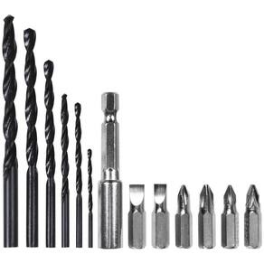 6 Bits para parafusar: 2 fendas 5 mm e 6 mm, 2 phillips ph1 e ph2, 2 pozidrive pz1 e pz2