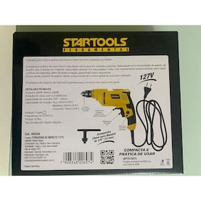 Com esta furadeira elétrica Startools Com Impacto; AR0384 você poderá executar varias tarefas em diferentes superfícies de uma maneira prática e simples. Sua potência de 600 W vai te oferecer uma grande capacidade da perfuração. Marca: Startools Ferramentas