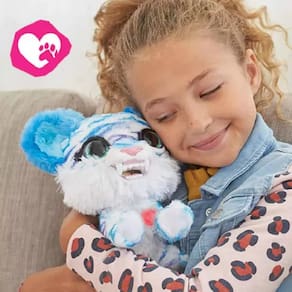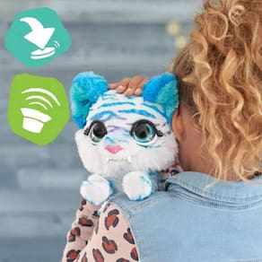 sta tigrinha pré-histórica precisa do seu amor e carinho para se sentir aquecida e parar de tremer. Esta pelúcia interativa FurReal estremece, bate os dentes e faz sons adoráveis ??quando começa a se sentir segura e aquecida novamente. Mais de 35 sons e reações. Ao fazer carinho, seu coração brilhará de felicidade.
