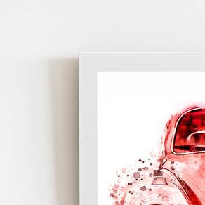 Fusca Aquarela Vermelho Carro Quadro Moldura Branca 60X40Cm