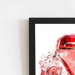 Fusca Aquarela Vermelho Carro Quadro Moldura Preta 60X40Cm