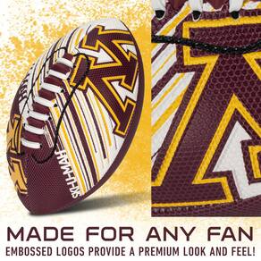 Futebol de espuma Franklin Sports Minnesota Golden Gophers — Minifutebol juvenil para crianças — Futebol júnior de espuma macia de 8,5" — Capa de fácil aderência SPACELACE — Brinquedo de futebol perfeito para crianças