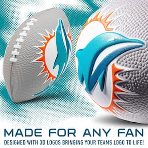 - Futebol de espuma de golfinhos de Miami: esta bola de futebol de espuma de poliuretano exclusiva é diferente de qualquer outra bola de futebol disponível, é especialmente projetada com logotipos 3D dando vida ao logotipo do seu time!