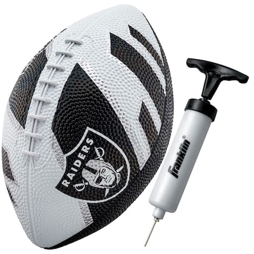 Franklin Sports NFL Las Vegas Raiders Futebol Americano – Futebol juvenil – Mini futebol de borracha de 21,5 cm – Perfeito para crianças – Logotipos e cores do time!