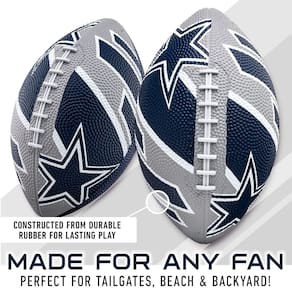 - Futebol americano Dallas Cowboys: esta mini bola de futebol americano de borracha é feita de borracha durável para que você possa manter a diversão nas suas portas, na praia e no quintal por inúmeras horas!