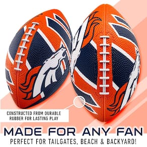 Franklin Sports NFL Denver Broncos Football – Futebol Juvenil – Mini futebol de borracha de 21,5 cm – Perfeito para crianças – Logotipos e cores do time! - Futebol DENVER BRONCOS: esta mini bola de futebol de borracha é construída de borracha durável para que você possa manter a diversão em suas portas traseiras, na praia, no quintal por inúmeras horas! - Perfeita para crianças: esta mini bola de futebol americano de 21,5 cm é o tamanho ideal para caber nas mãos de um jovem jogador para que seu futuro campeão possa pegar e jogar no campo como os profissionais! - Fácil aderência: o material de superfície de seixos profundos e os cadarços elevados estilo profissional garantem tração extra, o que torna as bolas de futebol fáceis de pegar e jogar - Para todos os climas: a borracha resistente à água e às intempéries significa que você pode trazer esta bola para brincar de chuva ou fazer sol sem danos - OFICIAL DA NFL: Esta bola de futebol de 21,5 cm é oficialmente licenciada pela NFL, com logotipos e cores específicos do time!