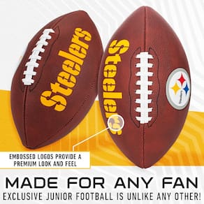 - Futebol americano Pittsburgh Steelers: este futebol juvenil júnior é a maneira perfeita para as crianças representarem seu time de futebol americano favorito da NFL enquanto jogam no quintal, na praia, na porta traseira ou em qualquer outro lugar!