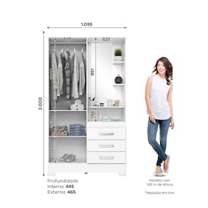 GUARDA-ROUPA B64 02 PORTAS E 03 GAVETAS DIFERENCIAIS Cabideiro de madeira revestido Espelho com moldura Frentes de MDP 15 mm Gavetas com corrediças metálicas Prateleiras usinadas Puxadores em ABS TAMANHO A: 2000 X L: 1095 X P: 465 MM Grantia: 90 dias. Montagem: Montagem, desmontagem e outras instalações serão de responsabilidade do cliente. Não nos responsabilizamos, no ato da entrega, por subir escadas/elevadores ou pelo transporte por guincho em apartamentos. Eventuais despesas são de responsabilidade do comprador; Observações importantes: A tonalidade da cor do produto pode variar de acordo com a sua tela, a iluminação do ambiente ou sua percepção visual. Lembrando que são fotos ilustrativas tratadas em estúdios podendo haver pequena diferença nas cores. A montagem será de responsabilidade do comprador; Não nos responsabilizamos, no ato da entrega, por subir escadas/elevadores ou transporte por guincho em apartamentos. Eventuais despesas são de responsabilidade do comprador; Confira as dimensões deste produto e certifique-se de que passará normalmente por supostos elevadores, portas, escadas e/ou corredores de sua residência; Para mais informações, acesse nossa Central de Atendimento. Marca: LM DECOR
