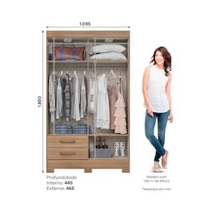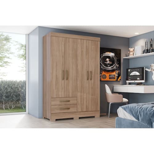 GUARDA-ROUPA BE12 04 PORTAS E 02 GAVETAS DIFERENCIAIS Cabideiro de madeira revestido Frentes de MDP 15 mm Gavetas com corrediças metálicas Puxadores em ABS TAMANHO A: 1850 X L: 1085 X P: 465 MM Grantia: 90 dias. Montagem: Montagem, desmontagem e outras instalações serão de responsabilidade do cliente. Não nos responsabilizamos, no ato da entrega, por subir escadas/elevadores ou pelo transporte por guincho em apartamentos. Eventuais despesas são de responsabilidade do comprador; Observações importantes: A tonalidade da cor do produto pode variar de acordo com a sua tela, a iluminação do ambiente ou sua percepção visual. Lembrando que são fotos ilustrativas tratadas em estúdios podendo haver pequena diferença nas cores. A montagem será de responsabilidade do comprador; Não nos responsabilizamos, no ato da entrega, por subir escadas/elevadores ou transporte por guincho em apartamentos. Eventuais despesas são de responsabilidade do comprador; Confira as dimensões deste produto e certifique-se de que passará normalmente por supostos elevadores, portas, escadas e/ou corredores de sua residência; Para mais informações, acesse nossa Central de Atendimento. Marca: LM DECOR