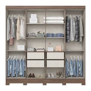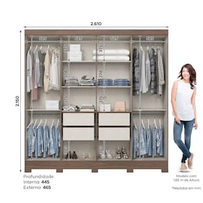 GUARDA-ROUPA B51 08 PORTAS DIFERENCIAIS cabideiros e calceiros de madeira revestido Espelho opcional A 600 x L 200 x P 2 mm Frentes de MDP 15 mm Gavetas com corrediças metálicas Puxadores de MDF revestidos TAMANHO A: 2150 X L: 2160 X P: 465 MM Grantia: 90 dias. Montagem: Montagem, desmontagem e outras instalações serão de responsabilidade do cliente. Não nos responsabilizamos, no ato da entrega, por subir escadas/elevadores ou pelo transporte por guincho em apartamentos. Eventuais despesas são de responsabilidade do comprador; Observações importantes: A tonalidade da cor do produto pode variar de acordo com a sua tela, a iluminação do ambiente ou sua percepção visual. Lembrando que são fotos ilustrativas tratadas em estúdios podendo haver pequena diferença nas cores. A montagem será de responsabilidade do comprador; Não nos responsabilizamos, no ato da entrega, por subir escadas/elevadores ou transporte por guincho em apartamentos. Eventuais despesas são de responsabilidade do comprador; Confira as dimensões deste produto e certifique-se de que passará normalmente por supostos elevadores, portas, escadas e/ou corredores de sua residência; Para mais informações, acesse nossa Central de Atendimento. Marca: LM DECOR