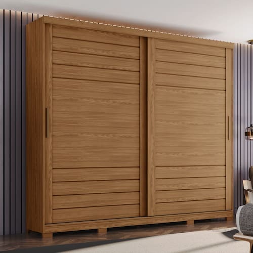 Com um design sofisticado e espaçoso, o Guarda-Roupa Cayman combina funcionalidade e beleza. Seu acabamento em MDF, as gavetas com corrediças telescópicas e os detalhes em bronze são ideais para quem deseja organizar o quarto com estilo.
