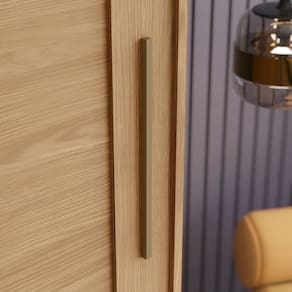 Portas deslizantes com acabamento soft e puxadores bronze