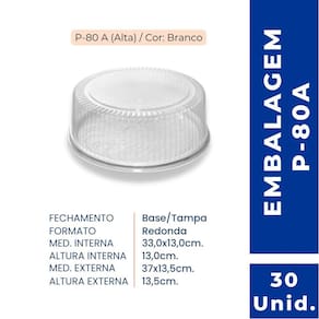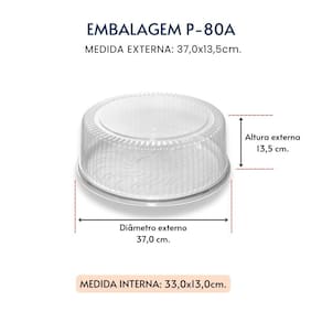 Sua função principal é armazenar bolos, doces e tortas. Profissionalizando sua produção. Fabricado com material pet de alta qualidade é resistente, higiênico e possui um ótimo acabamento estético. É bastante utilizado em confeitarias e lojas de bolo e a tampa adere muito bem a base deixando a embalagem segura para transporte.